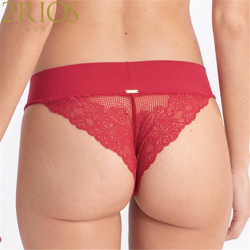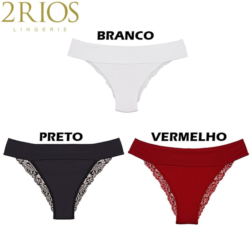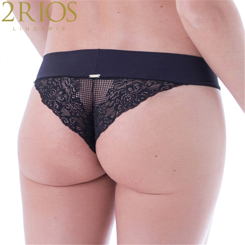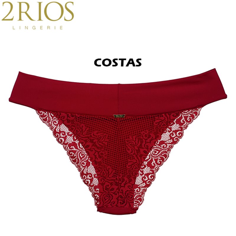 -Calcinha com cós duplo, frente em microfibra e costas em renda