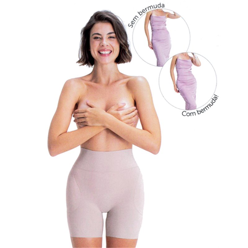 Bermuda mais Quadril com cós alto duplo e enchimento no quadril