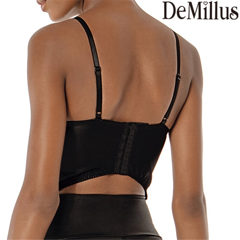 Sutiã Top DeMillus Dance 67024. Em elastano acetinado com efeito cirrê e detalhes em renda. Taças em espuma moldada. Suporte Ultraflex. Barbatanas na frente e nas laterais.