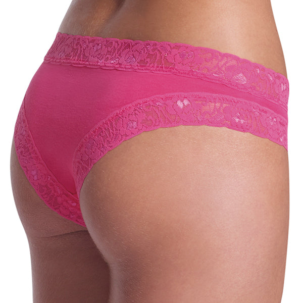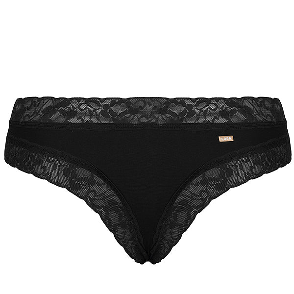 Confeccionada em microfibra de toque suave e macio. Calcinha modelagem biquíni, com cintura baixa, laterais médias e pernas cavadas. Cintura e cava das pernas com aplicação em linda renda de leve transparência, que acrescenta charme à peça. Fundo com forro em algodão.