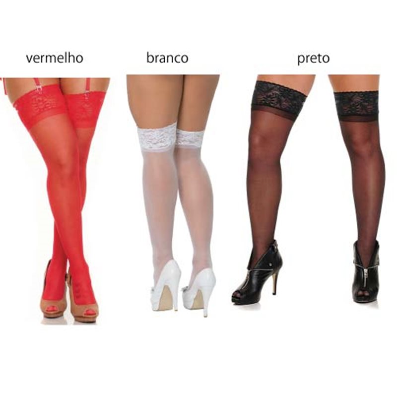 Meia 7/8 Renda Com renda e silicone, fio 15,